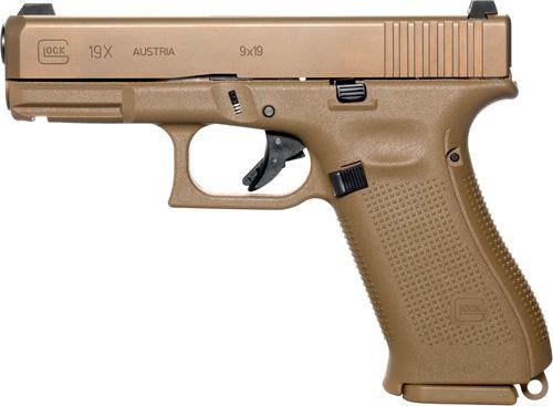 Glock 19X, 9mm, 19rd x2, 17rd x1, 4.02" Glock Marksman Barrel, Glock Night Sights, Coyote Finish, Coyote Polymer Frame, Lanyard Loop, Ambidextrous Slide Stop Lever, Made in Austria...PX1950703